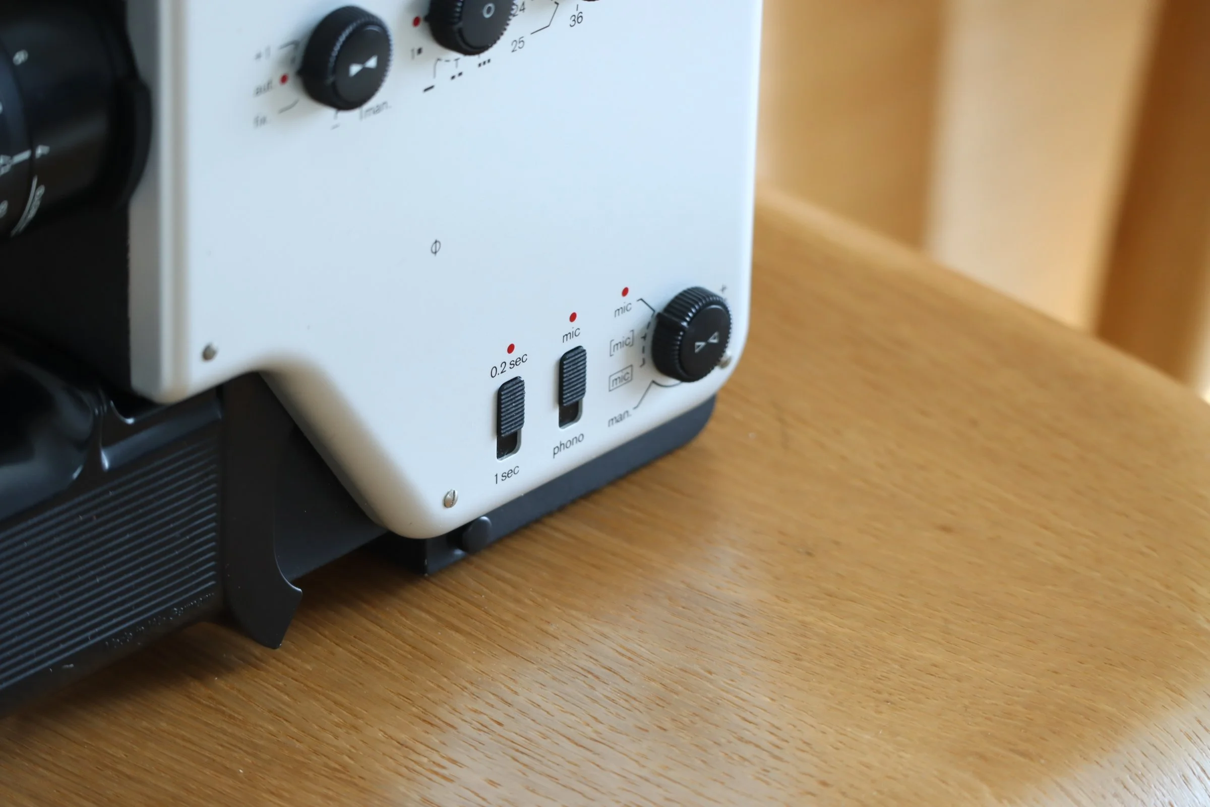 filming speed: 9, 16 2/3, 18, 24, 25, 36 fps, single frame