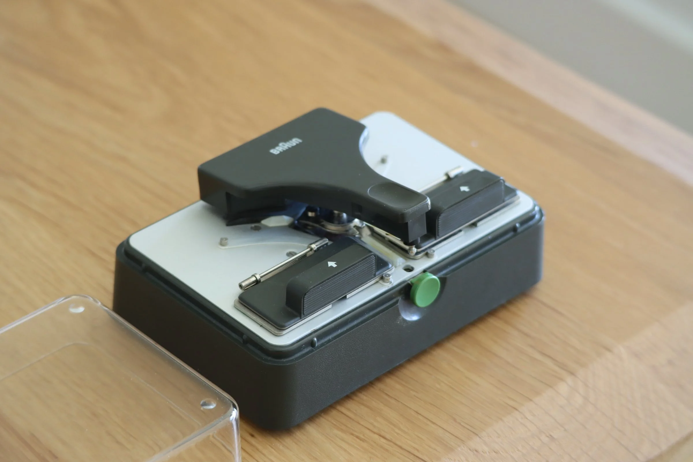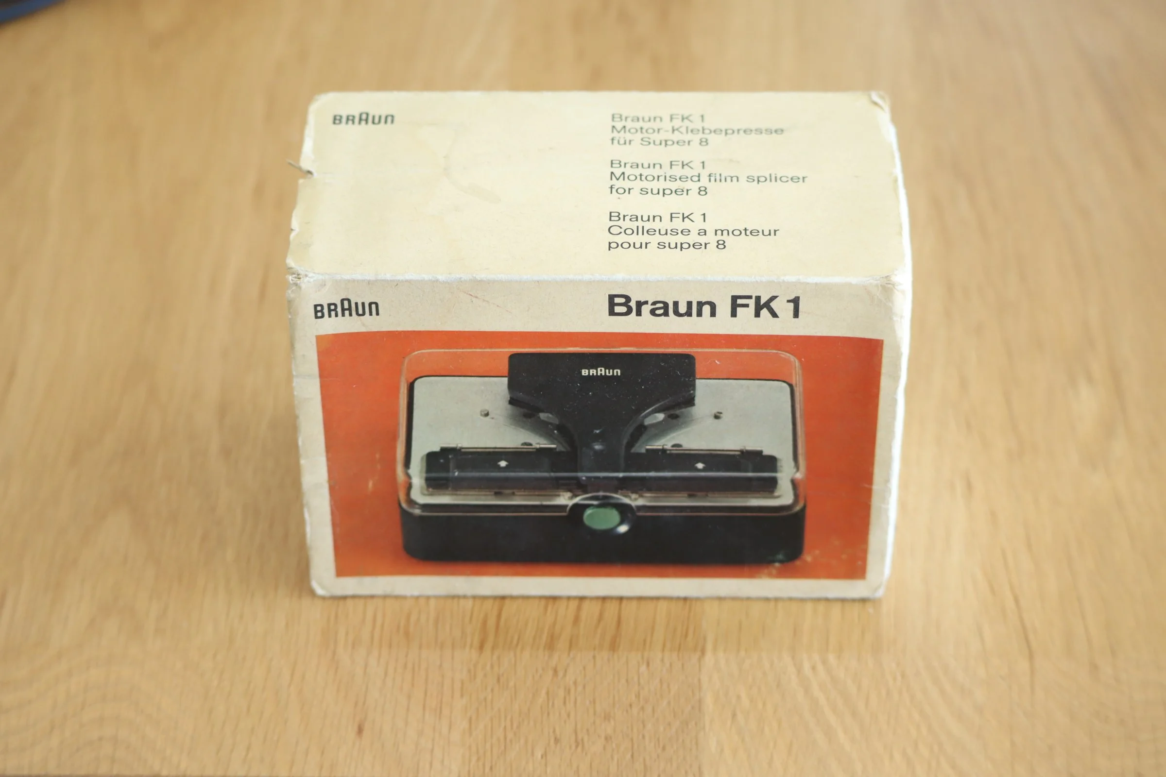 Here is a rare Original Braun Germany item from 1968.The FK-1 FILMPRESSE, a splicer / film cutter for Super-8 and Single-8 film.