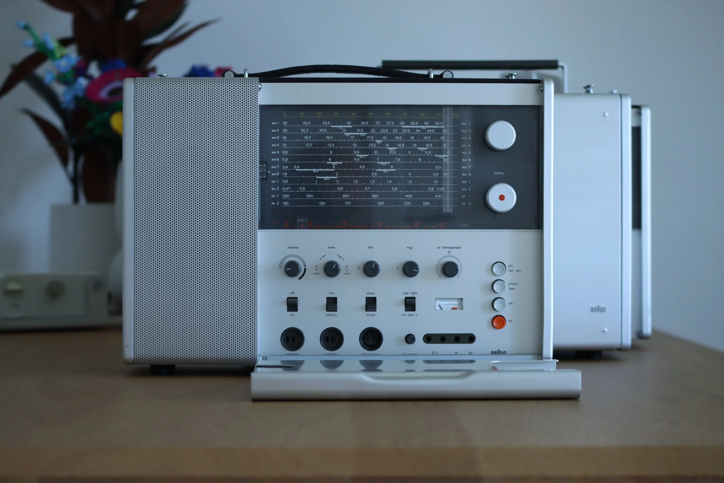 The Braun T1000, and its successor the T1000 CD (distinguished by its leather handle, rounded tuning knobs, and rear lettering), represents one of Braun's most significant contributions to world band receivers. Designed by Dieter Rams, it became particularly popular among German diplomatic corps, explaining the CD designation.